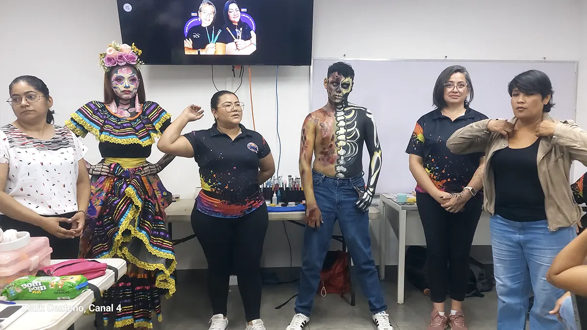 “Trabajamos la temática de Catrinas y efectos especiales usando maquillaje profesional para ampliar el portafolio de servicios de los artistas”, explicó Sanabria.