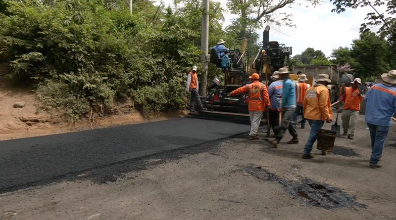 Foto: Multinoticias / Obreros de la Alcaldía de Managua durante las obras de revestimiento asfáltico en la comunidad San Isidro de la Cruz Verde.