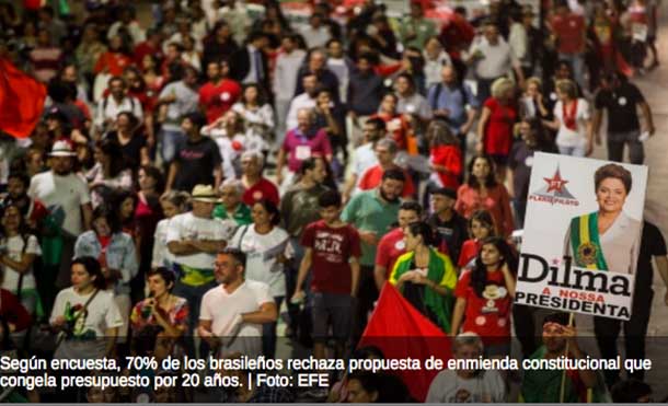 Miles de brasileños salieron a la calles en rechazo a la enmienda que busca congelar la inversión pública por 20 años.