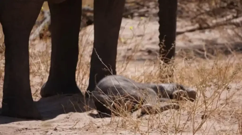 Según William, la madre solo soltó a la cría de forma intermitente para comer. Después de 2 días la matriarca ahuyentó a la elefanta en duelo lejos del cadáver para que todo el rebaño, incluida la madre, siguieran adelante.