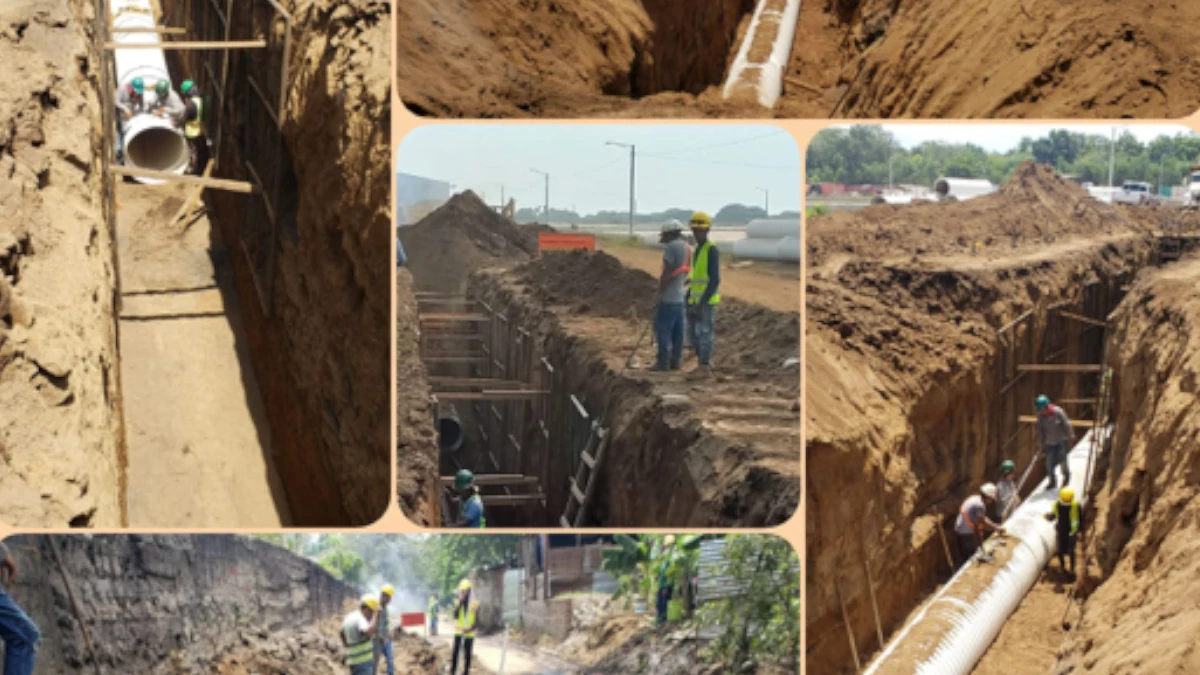 CHINANDEGA – NICARAGUA / Con un avance físico del 55% en las Colectoras Sanitarias Norte y Sur, Chinandega sigue dando pasos significativos en materia de saneamiento. Estas tuberías de gran diámetro están diseñadas para recolectar las aguas residuales de la ciudad y trasladarlas a la nueva Planta de Tratamiento, un proyecto esencial para el bienestar de la comunidad.