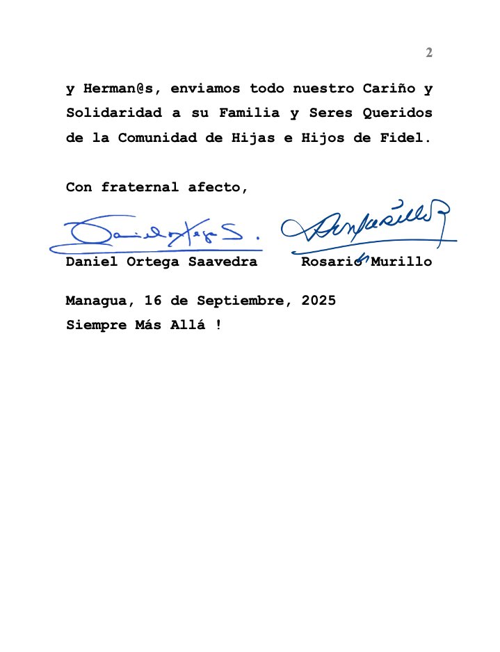 A continuación, mensaje íntegro del Gobierno de Nicaragua: