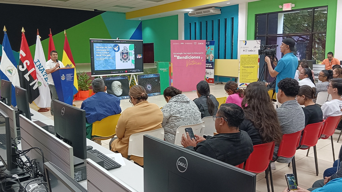 La actividad, promovida por el Ministerio de Educación (MINED), contó con la exposición de destacados investigadores de la UNAN-Managua y del Centro de Investigación sobre Ciencias Espaciales, quienes compartieron saberes sobre la Astronomía en los pueblos originarios, su evolución histórica y los aportes científicos desde Isaac Newton hasta el desarrollo astronómico en América Latina.