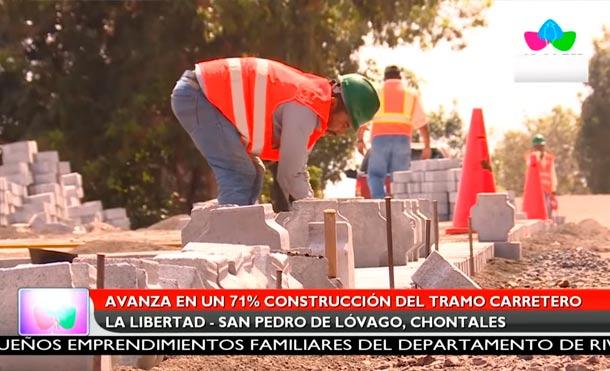 El Ministerio de Transporte e Infraestructura (MTI) avanza en un 71.5% en la construcción del tramo carretero adoquinado de 15.2 kilómetros entre La Libertad y San Pedro de Lóvago, en Chontales, informa un funcionario.
