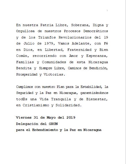 NOTA DE PRENSA DE LA DELEGACIÓN DEL GRUN PARA EL ENTENDIMIENTO Y LA PAZ EN NICARAGUA