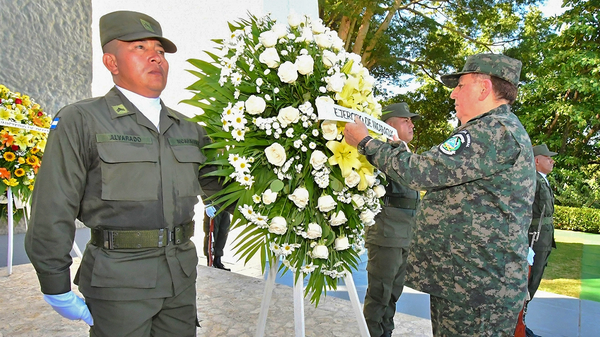Durante la ceremonia, se colocaron ofrendas florales ante el Monumento al “Soldado de la Patria”, por parte de la Comandancia General; Dirección de Doctrina y Enseñanza; Universidad de Defensa de Nicaragua “4 de mayo” (UDENIC); directores de las escuelas militares y del Centro Superior de Estudios Militares “General de División José Dolores Estrada Vado”; Fuerza Aérea y Defensa Antiaérea; Fuerza Naval; Agregados de Defensa, Militares, Navales, Aéreos, Adjuntos y Jefes de Misiones Militares acreditados en la República de Nicaragua. Asimismo, de la Procuraduría General de Justicia; del Ministerio de Defensa y de la Jefatura de las Fuerzas Policiales de la República de Nicaragua.