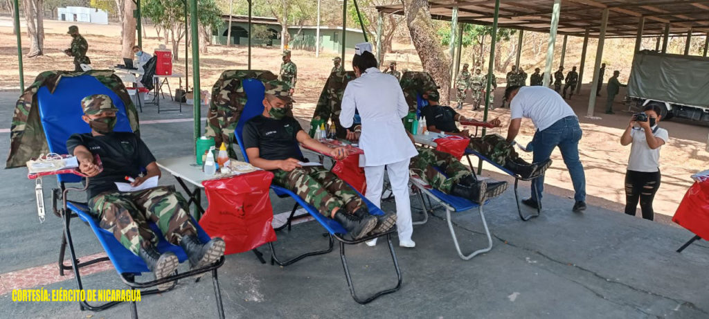El Ejército de Nicaragua consecuente con el lema de que “Somos el pueblo mismo uniformado trabajando en su propio beneficio”,del 21 al 23 de febrero de 2023, a través de la Escuela Nacional de Adiestramiento Básico de Infantería “Soldado Ramón Montoya”, en coordinación con el Banco Regional de Sangre de Estelí, participó en jornada de donación voluntaria de sangre.