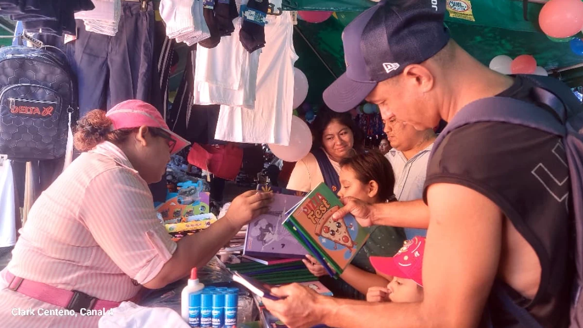 Por su parte, la comerciante Karla Rivas aseguró que la feria representa una oportunidad importante, ya que se ofrecen descuentos, combos, regalías y mochilas a precios accesibles, facilitando las compras familiares.