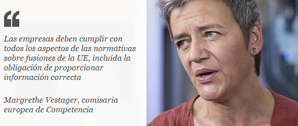 «Las empresas tienen que cumplir con todos los aspectos de las normativas sobre fusiones de la Unión Europea, incluida la obligación de proporcionar información correcta», explicó la comisaria europea en un comunicado.