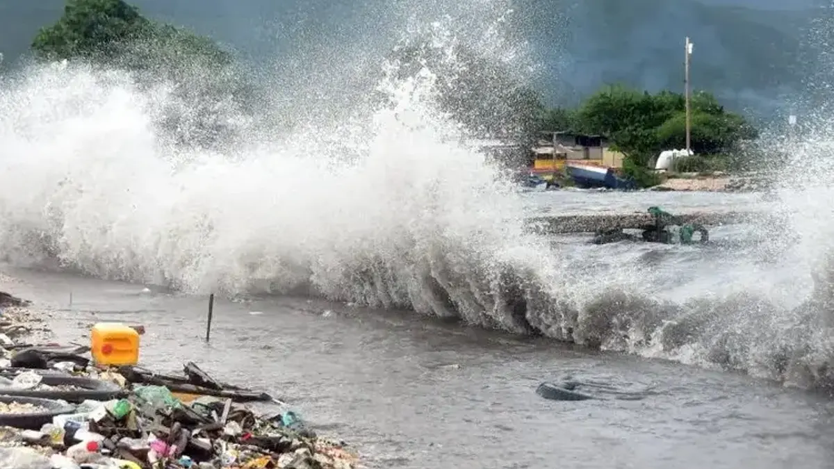 Foto cortesía / Oleaje provocado por los vientos de Melissa al sur de Jamaica, mientras el área ya es afectada por las bandas externas del poderoso huracán