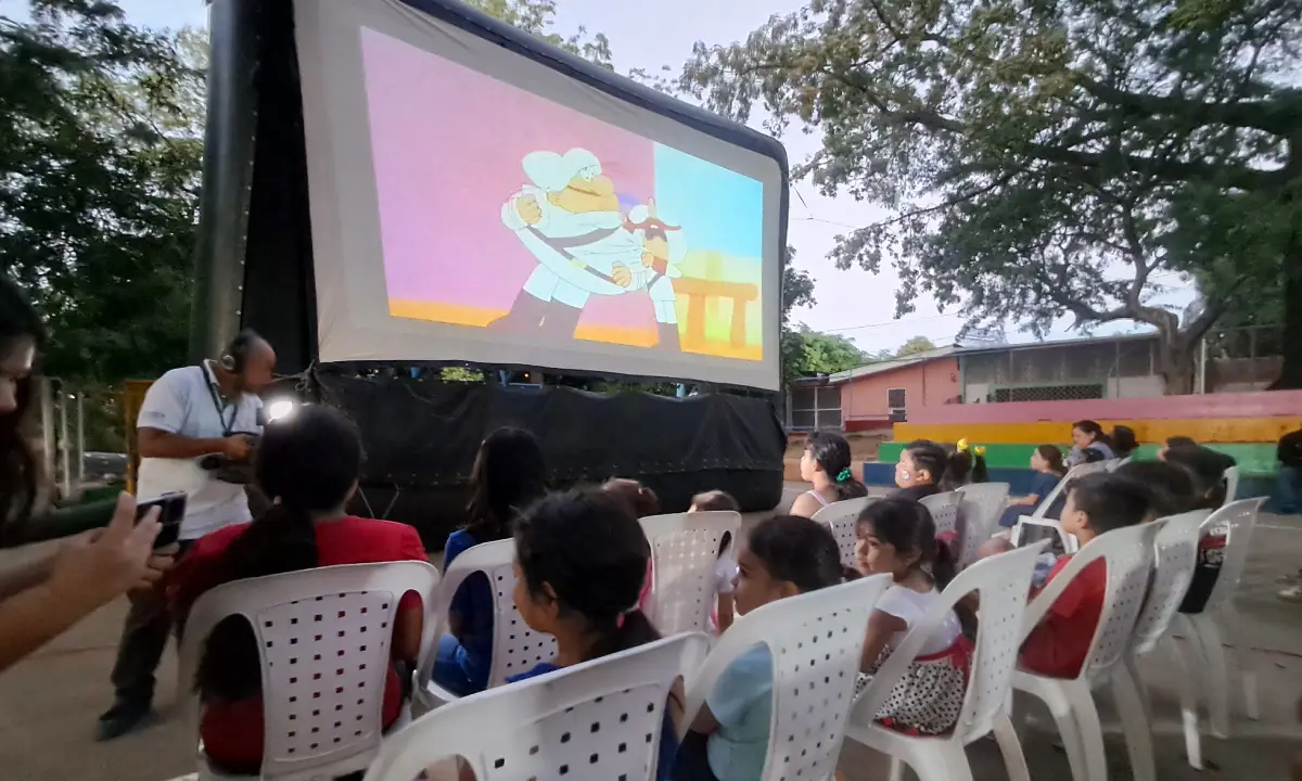 En esta ocasión se proyectó el cortometraje Elpidio Valdés, del realizador cubano Juan Padrón, una producción que transmite valores de soberanía, identidad y amor por la patria, contribuyendo al fortalecimiento cultural de la niñez.