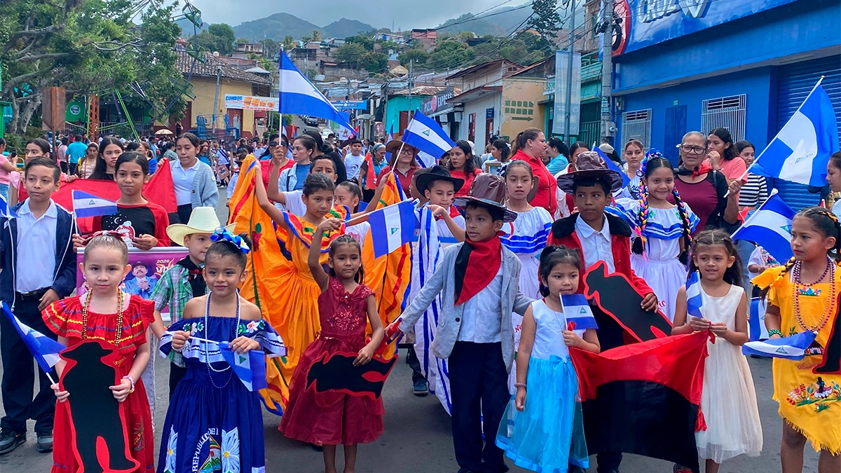 Las actividades incluyeron un vistoso desfile protagonizado por niños y niñas de educación inicial y primaria, quienes lucieron atuendos alusivos al héroe nacional Augusto C. Sandino y a Blanca Aráuz, portando banderas rojinegras y azul, blanco y azul, además de pancartas coloridas en honor a la soberanía nacional.