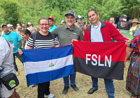 La Delegación de Nicaragua estuvo representada por la compañera Kathya Chévez, directora de Recursos Naturales, y el compañero Roberto Domínguez, director general forestal del MARENA, quienes participaron activamente en la siembra de árboles.