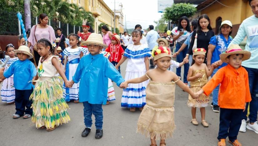 Las calles de la ciudad se vistieron de alegría con música, trajes tradicionales y expresiones artísticas durante una romería que partió desde el histórico barrio de Monimbó, símbolo de lucha y dignidad, y concluyó con un acto cultural en el parque central de Masaya.