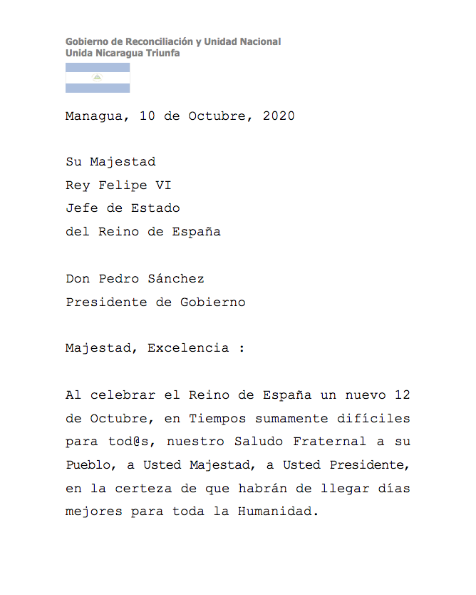 A través de una nota de prensa, el Presidente de la República Comandante Daniel Ortega y Compañera Vicepresidenta Rosario Murillo, enviaron mensaje al pueblo y gobierno de España.