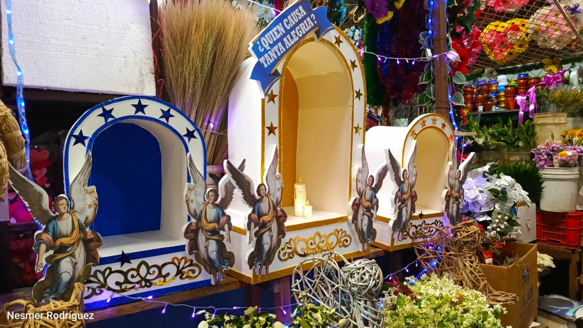 Las ventas de altares y casitas para la Virgen también han aumentado, ya que los hogares comienzan a decorar sus espacios. Morales explicó que cuentan con arreglos de diferentes tamaños y colores, listos para colocar a la patrona de Nicaragua.