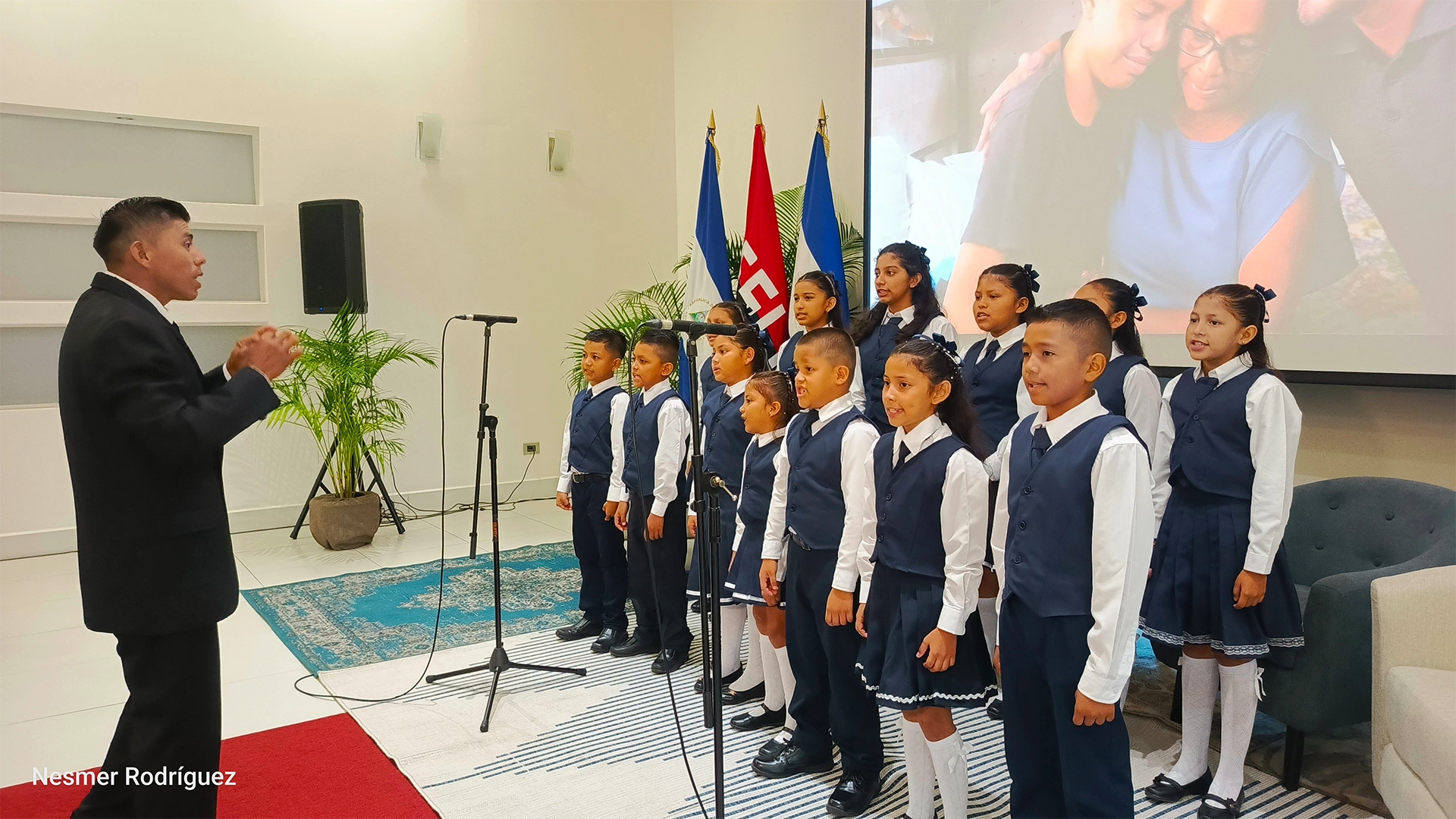 La presentación también incluyó la interpretación de la canción “Con Respeto y Sin Retroceder”, compuesta e interpretada por el Coro Estudiantil de la comunidad Rosa Grande, del municipio de Siuna. La estudiante Marguire Sánchez, integrante del coro, explicó que la melodía invita a respetar a los demás y perseverar ante las dificultades.