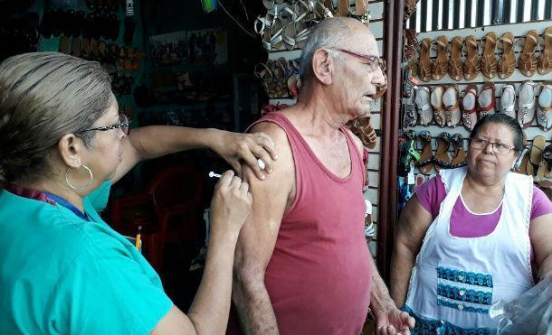 Personal del Centro de Salud Róger Osorio, llegarón al sitio (mercadito) con biológicos, quienes durante la visita se aplicó la vacuna anti-tétano y contra la neumonía. El trabajo se desarrolló, tramo por tramo, concientizando a los comerciantes sobre la importancia de vacunarse.