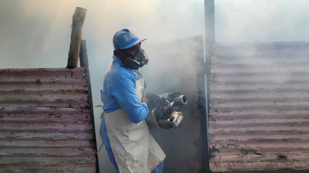 Foto Multinoticias / Brigadista del MINSA realizando fumigación