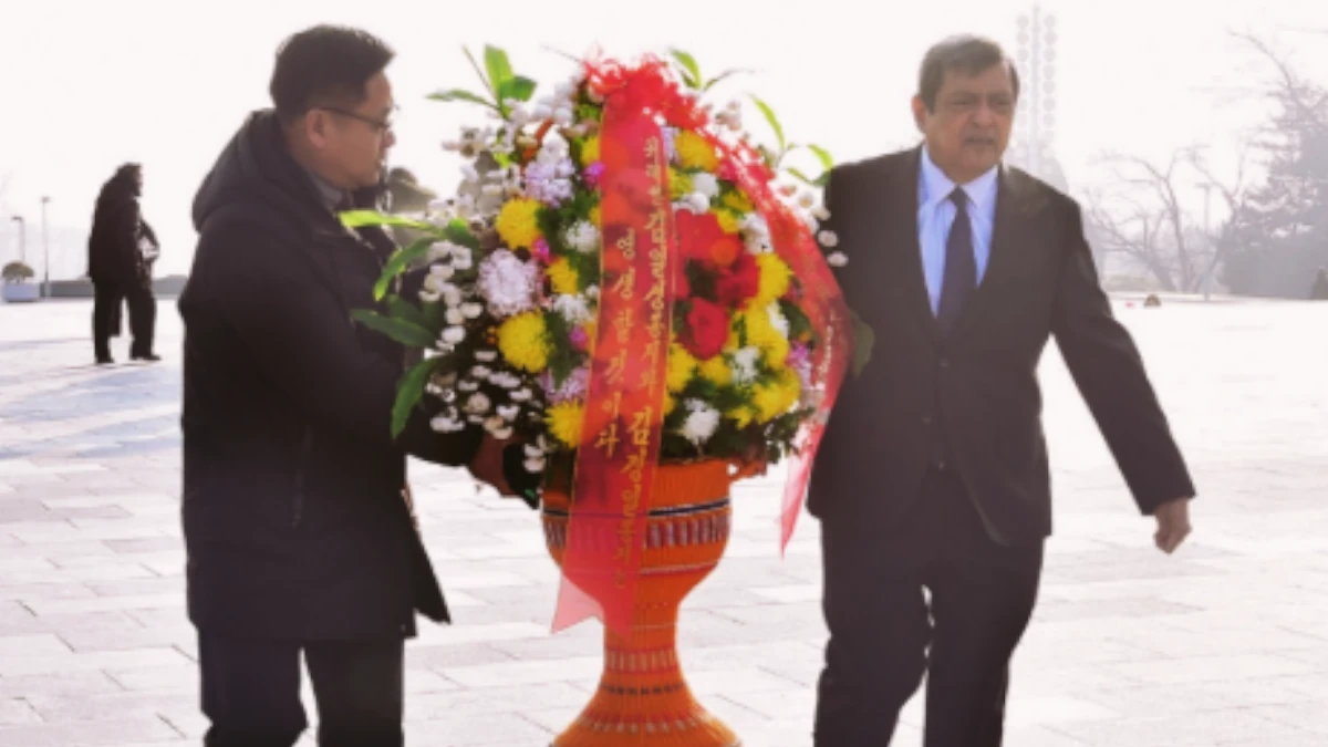 Al homenaje también asistieron miembros del Cuerpo Diplomático acreditado en la República Popular Democrática de Corea, quienes depositaron ofrendas florales y rindieron tributo al líder coreano.