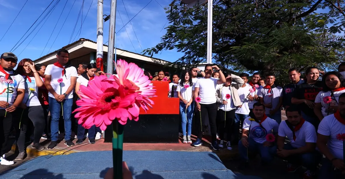 Miembros de la Juventud Sandinista colocaron flores, dedicaron versos y consignas recordando las luchas de aquel joven guerrillero Leonel Rugama y que les inspira a seguir su legado.