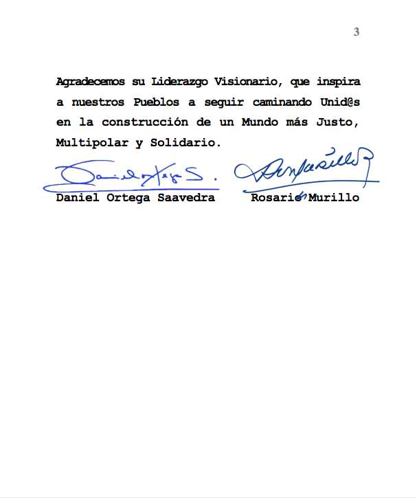 From our Nicaragua, Always Blessed and Always Free, we reaffirm our firm commitment to continue building together that Community of Shared Future for Humanity, which inspires confidence and hope for all peoples of the world.