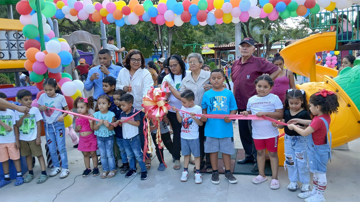 Los niños de Condega esperaban con entusiasmo la inauguración, y no pudieron contener su emoción al disfrutar de las nuevas instalaciones junto a sus familias.