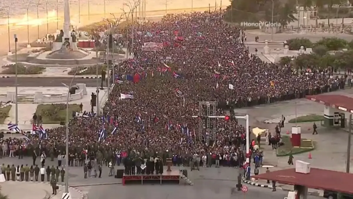 CUBA / Miles de cubanos se congregaron este viernes en la Tribuna Antimperialista José Martí, en La Habana, frente a la sede de la misión de Estados Unidos, para despedir a los 32 combatientes que ofrendaron su vida haciendo frente a la vil agresión contra Venezuela el pasado 3 de enero y defendiendo al presidente Nicolás Maduro, y a continuación iniciaron la antimperialista Marcha del Pueblo Combatiente. Informó la Multiplataforma TeleSur.