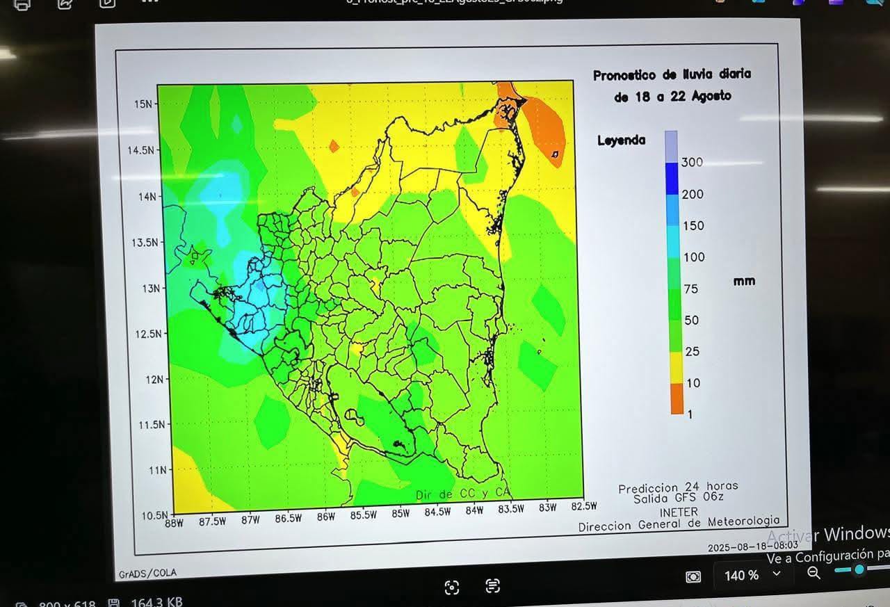“En los próximos siete días esperamos lluvias de ligeras a moderadas, principalmente en el occidente y norte. También podrían presentarse tormentas eléctricas y ráfagas de viento fuerte durante los episodios de lluvia, aunque después las condiciones tienden a estabilizarse con vientos débiles”, explicó Manuel Prado, meteorólogo de INETER.