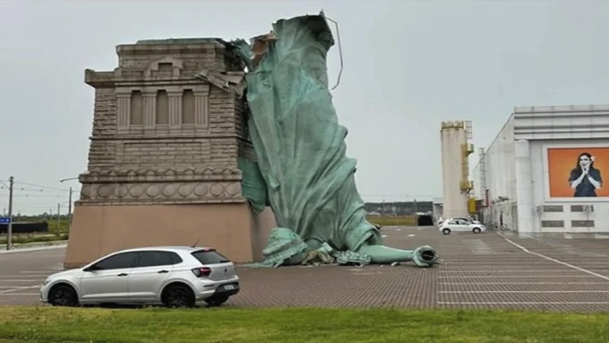 SÃO PAULO – BRASIL / La réplica de la Estatua de la Libertad de Brasil, símbolo del bolsonarismo, colapsó a causa de los vientos intensos en el estado de Rio Grande do Sul. Así informó teleSUR.