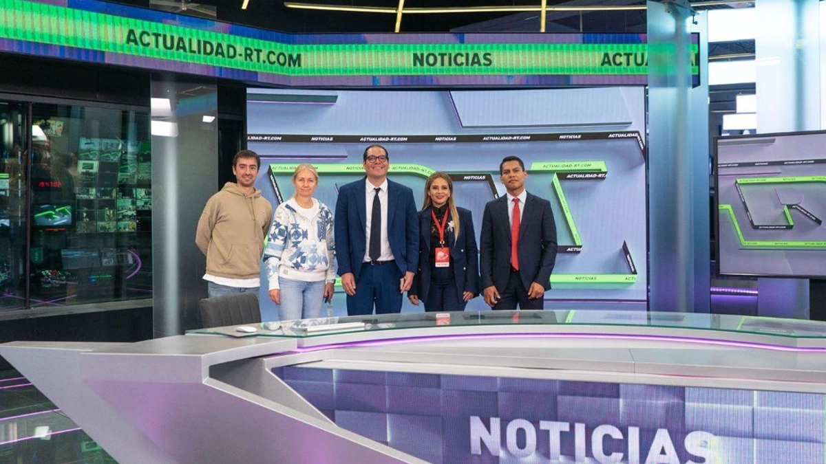 Durante el encuentro, los Comunicadores Sandinistas realizaron un recorrido por los estudios de RT, donde pudieron conocer de cerca el trabajo periodístico y tecnológico de la cadena internacional.