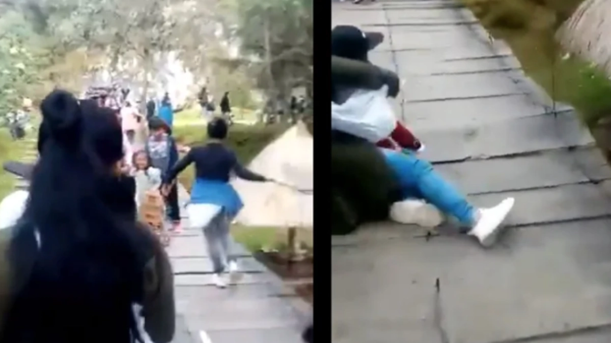 En un video, que circula por las redes sociales, se observa a una docena de personas atravesando el puente, una de ellas lleva a un niño en brazos y al menos otra sujeta a un menor de la mano. La cámara deja de enfocar cuando el puente se desprende y se escucha a una mujer gritando: «¡Mami, mami!».