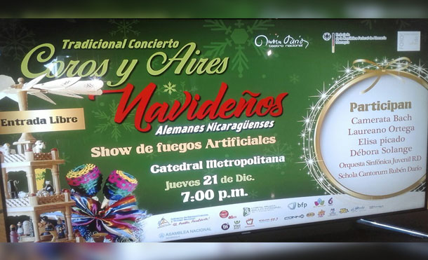 El director del Teatro Nacional Rubén Darío, Ramón Rodríguez, anunció que a partir del 10 al 30 de diciembre, la Camerata Bach con el apoyo de la Embajada de Alemania, estarán realizando la gira de conciertos “Coros y Aires Navideños”, la cual recorrerá varios departamentos del país incluyendo: Managua, Masaya, Matagalpa, León y Río San Juan.