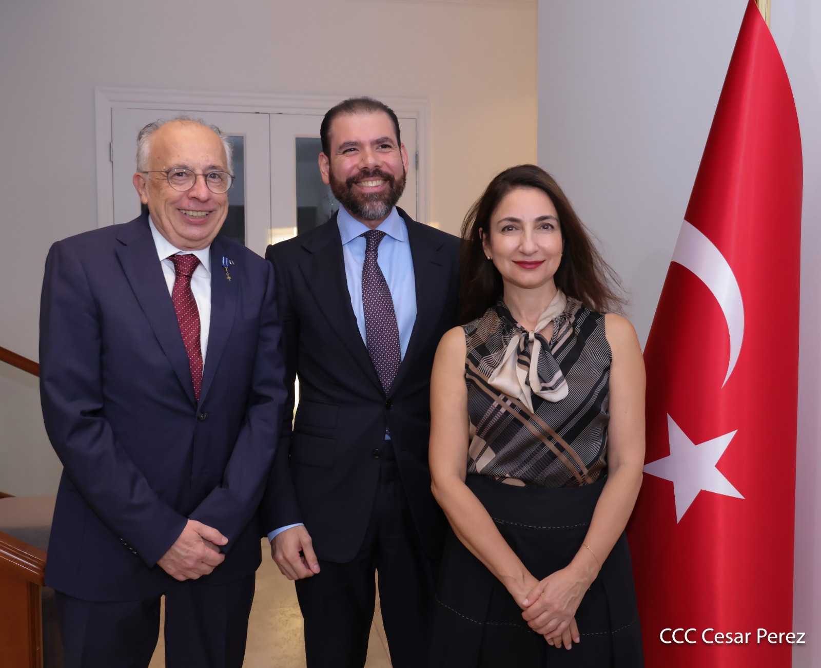 El Embajador de Türkiye en Nicaragua Sr. Nuri Kaya Bakkalsabi dijo que la recepción coincide con el 75 Aniversario de relaciones diplomáticas entre nuestros paises. Además, hizo énfasis en la inauguración de la sede diplomática de Türkiye en Managua.
